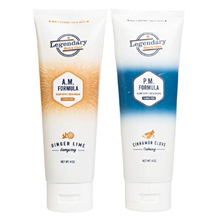 Introducing Legendary Men's Care AM/PM Formula made with Naturally-Sourced, Safe, And Science-Backed Trustworthy MAN Ingredients For A Whiter Smile