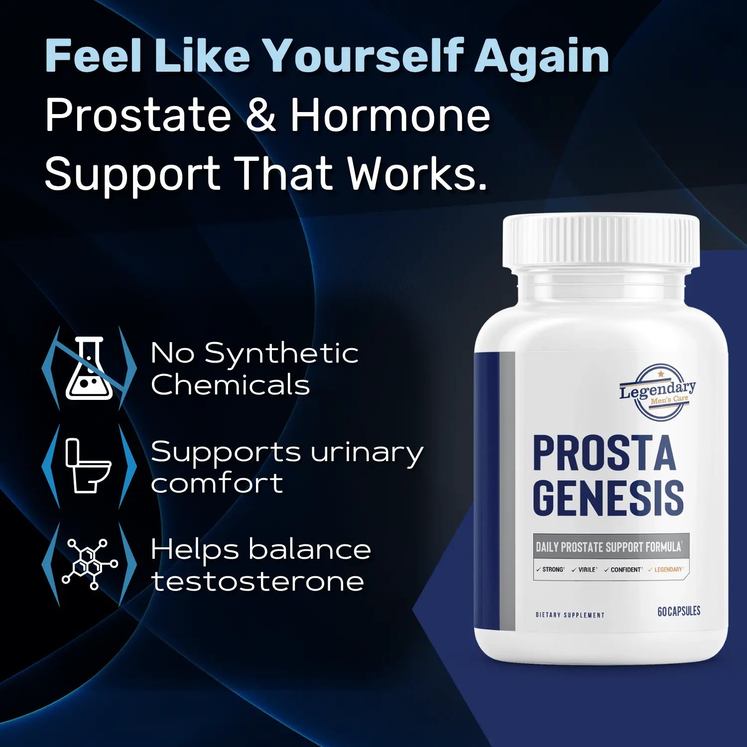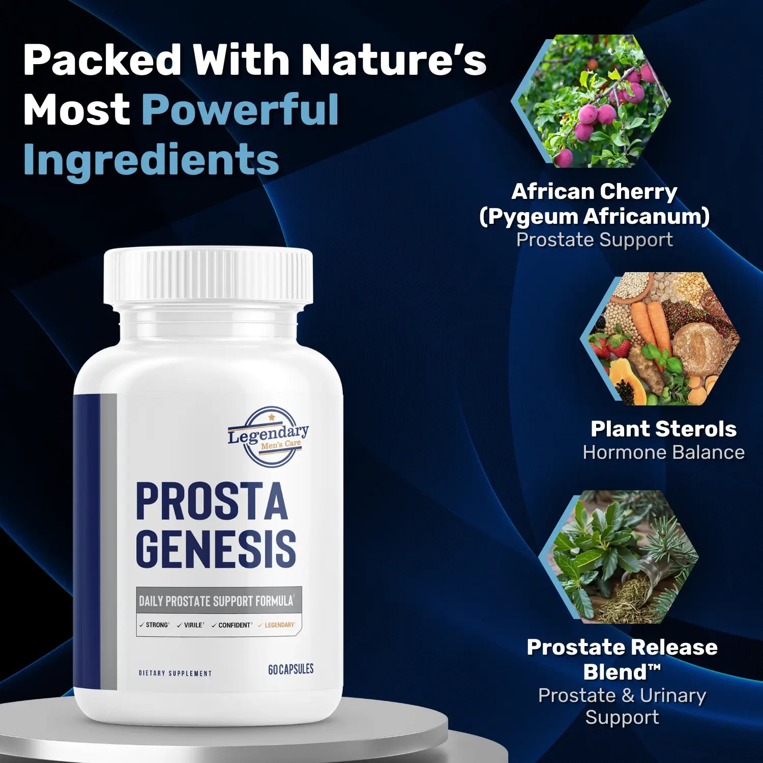 Formulated specifically for men, ProstaGenesis is made with premium, naturally sourced ingredients that work together to promote daily comfort and wellness — without drugs, hormone treatments, or unwanted side effects.