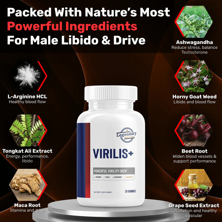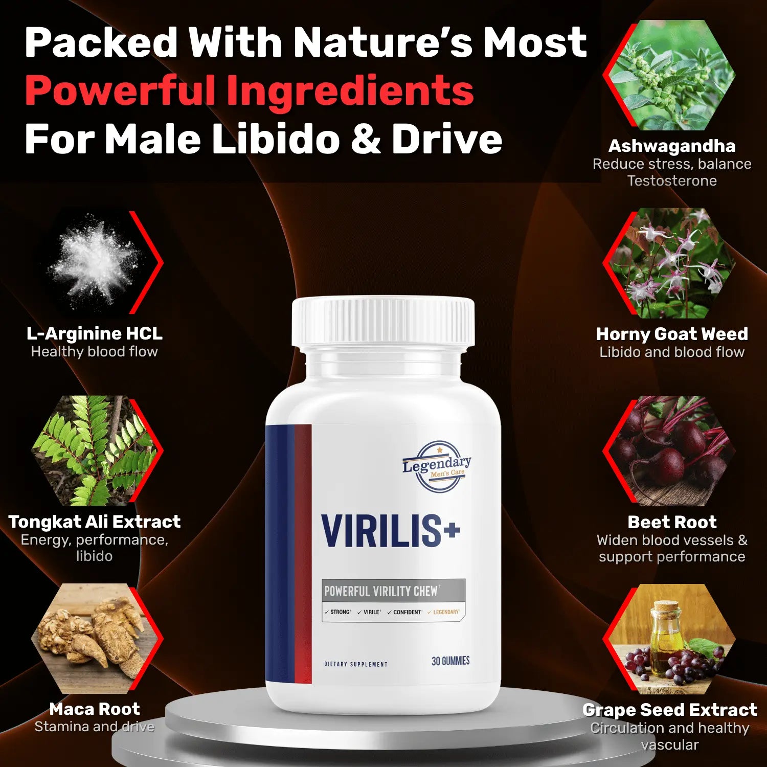 Packed with powerhouse natural ingredients, Virilis+ is designed to: